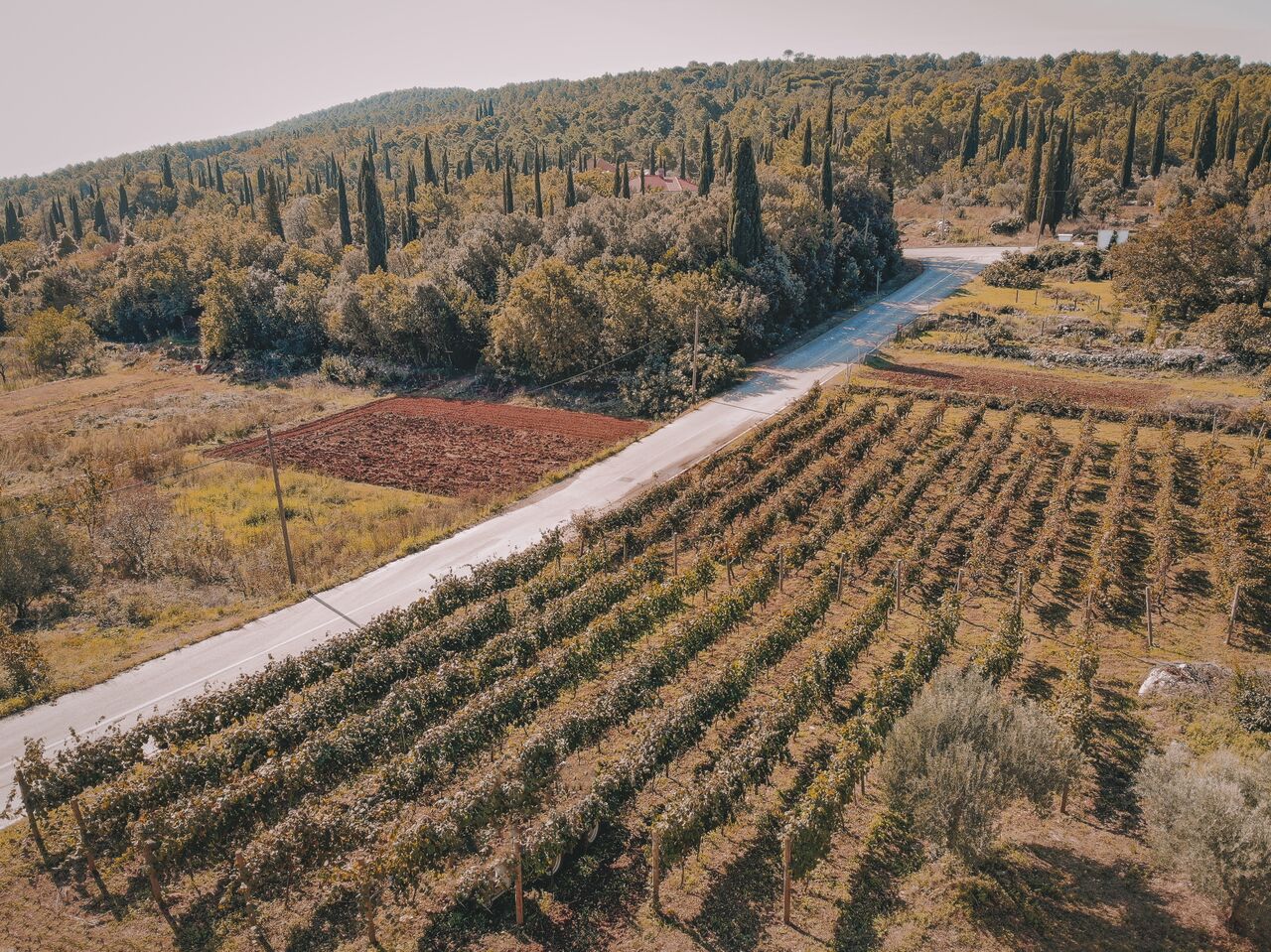 Die Weinberge der Familie Crvik liegen in unmittelbarer Nähe des Weinguts, in einer sonnigen Gegend, in der die sorgfältig gepflegten autochthonen Sorten Plavac Mali und Dubrovniker Malvasia das Beste aus Sonne und Boden aufnehmen und in edle Säfte verwandeln, die sich in Trauben hinter knorrigen Reben verbergen.