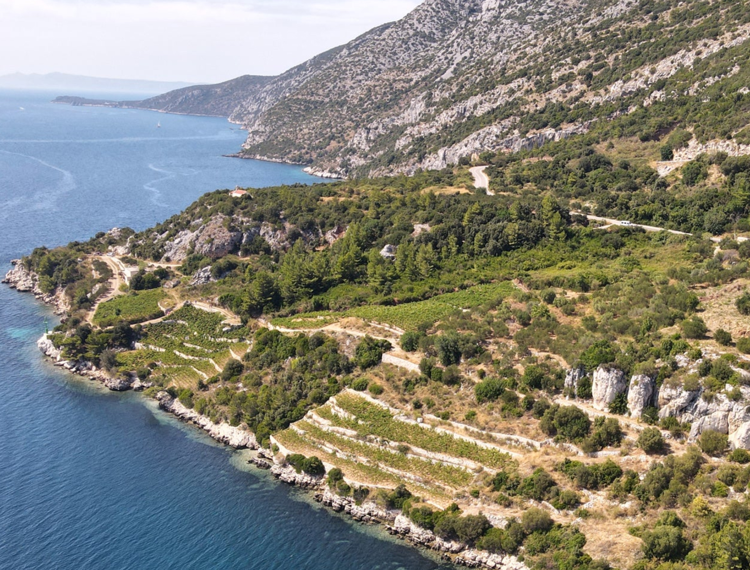Nachdem Bob Benmosche und Marija Mrgudić einen mit blühendem Ginster bedeckten Hang gesehen hatten, der sich zum Meer hinabzog, und von einer alten Volksweisheit gehört hatten, dass dieser Boden besonders gut für den Weinbau geeignet sei, begannen sie, Grundstücke zusammenzutragen, die gemeinhin nicht als ideale Weinbergslagen galten. Bobs Philosophie, neue Wege zu gehen – auch wenn es sonst niemand tut –, führte sie zu einem Standort mit ehemaligen Soldatenbaracken aus dem Ersten Weltkrieg, wunderschönen Olivenbäumen und einer Geschichte, die vermutlich bis in die Römerzeit zurückreicht.